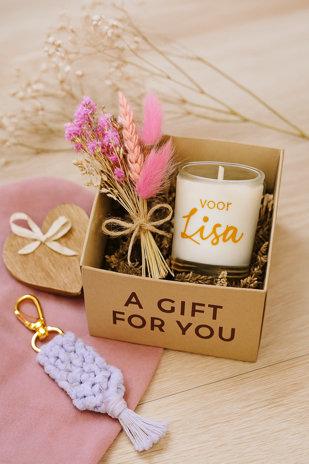 Onze collectie bestaat uit creatieve, zorgvuldig samengestelde cadeautjes — van gepersonaliseerde kaarsen tot vrolijke sleutelhangers en seizoensboxen. Elk item wordt met de hand geselecteerd of gemaakt, met oog voor stijl, kwaliteit en een tikkeltje magie.