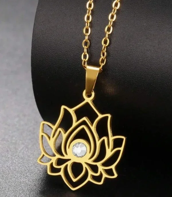 Deze elegante halsketting met lotusbloem-hangertje staat symbool voor groei, zuiverheid en innerlijke kracht. De lotusbloem bloeit uit de modder — een herinnering dat schoonheid ontstaat uit uitdagingen.