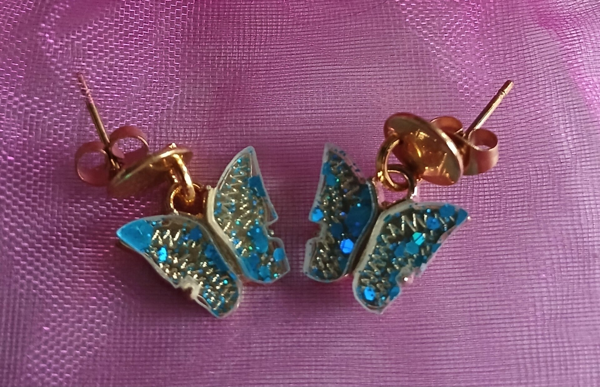 Vlinder Oorbellen – Groen Glitter & Blauw Glitter