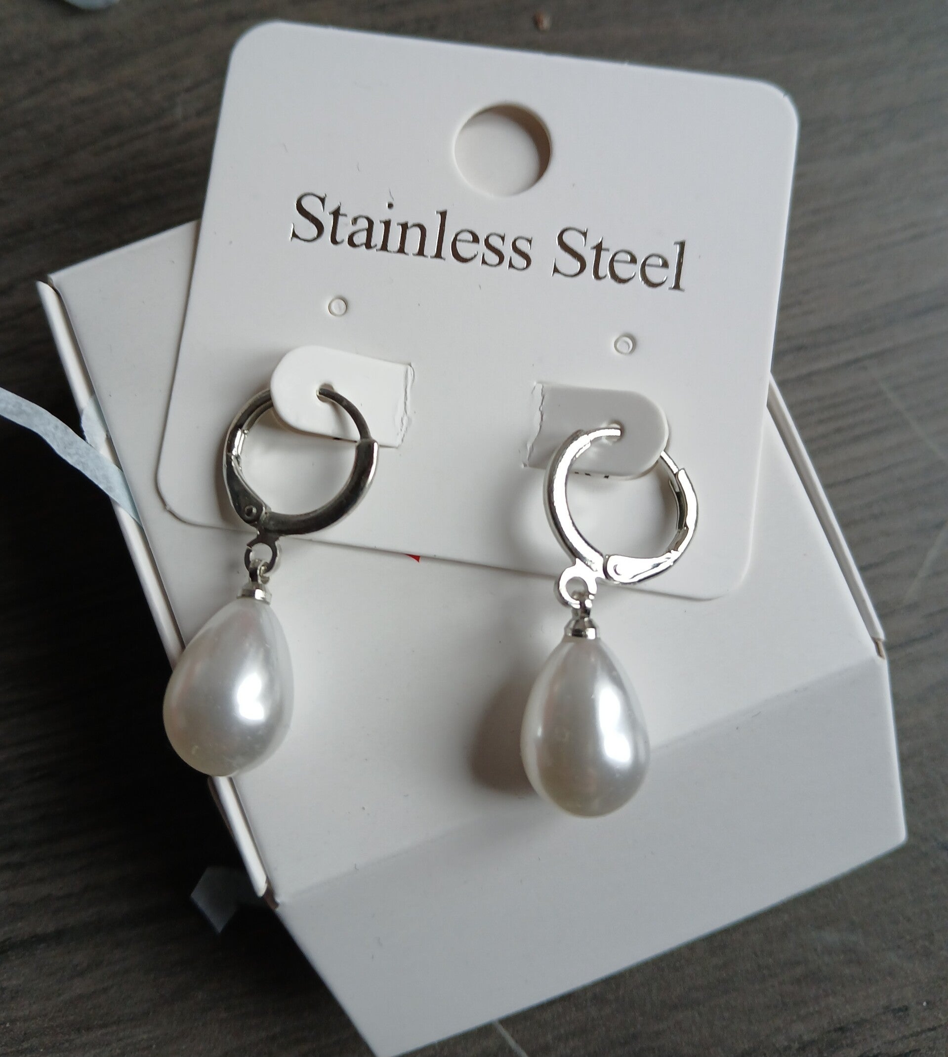 Design: Glanzende zilverkleurige roestvrijstalen hoops met eenvoudige witte pareldruppels