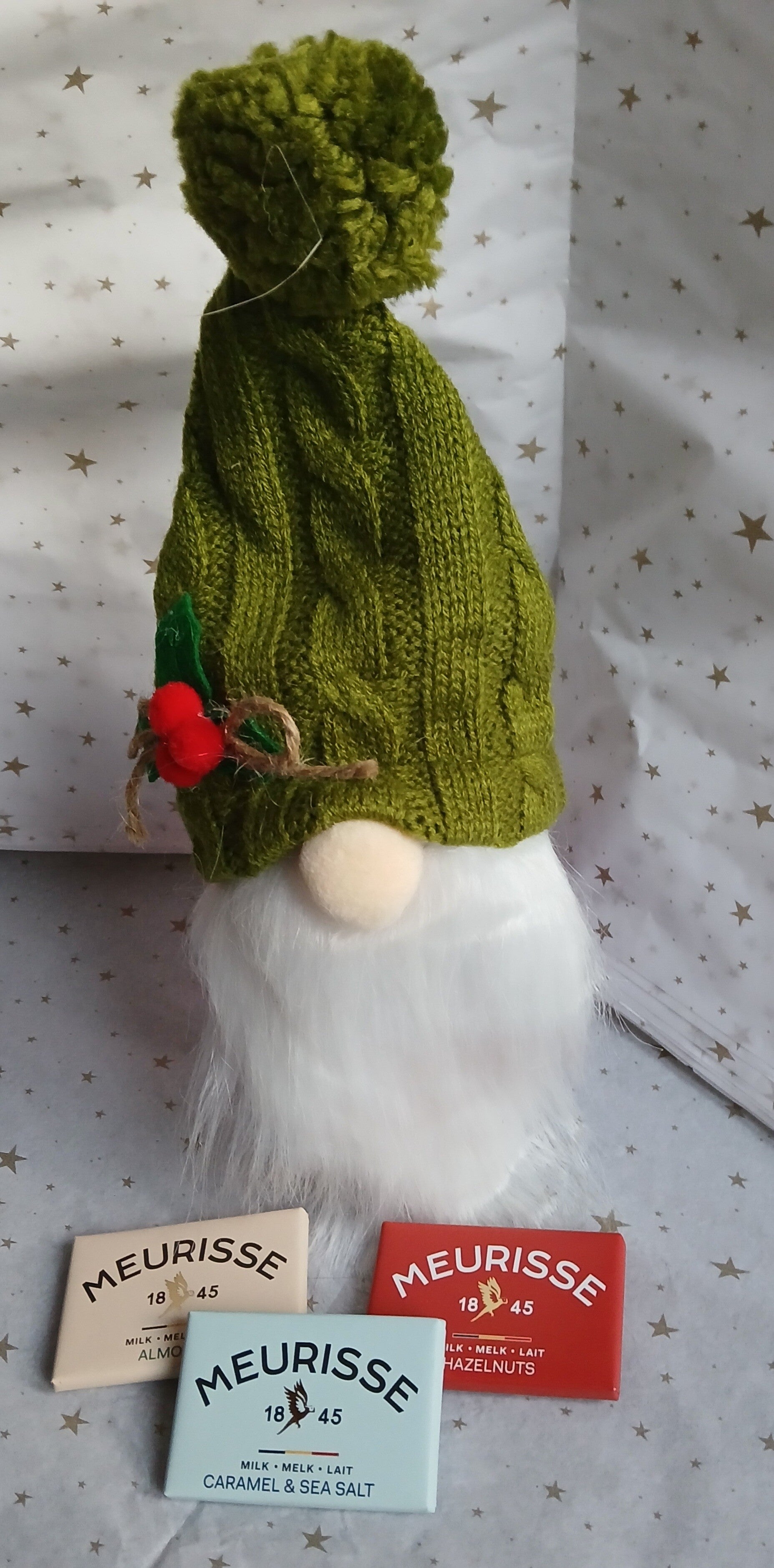 Inclusief drie heerlijke Meurisse chocoladereepjes in de smaken melk met amandel, melk met karamel & zeezout, en melk met hazelnoot – een zoete traktatie voor elke chocoladeliefhebber.