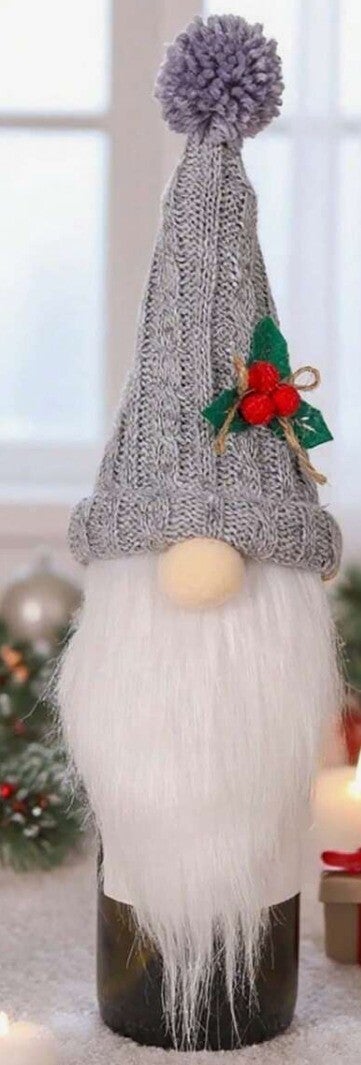 Transformeer je wijnfles in een gezellige kerstkabouter met deze groene gebreide wijnfleshoes, compleet met pompon, witte baard en decoratieve besjes.