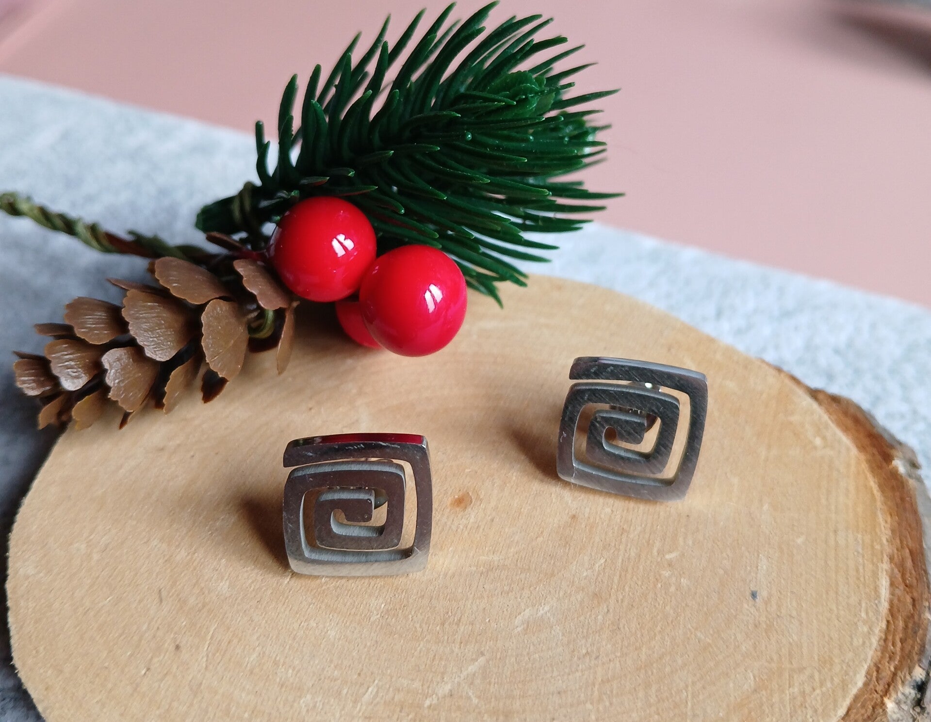 Deze moderne, vierkante oorbellen met een spiraalvormig reliëf combineren een geometrisch design met een donkere metallic afwerking. Ze stralen een eigentijdse elegantie uit en zijn perfect voor zowel feestelijke gelegenheden als dagelijkse stijlaccenten. De subtiele glans en het unieke patroon maken ze tot een echte eyecatcher. Ideaal als cadeau tijdens de feestdagen dankzij de winterse sfeer van de presentatie.