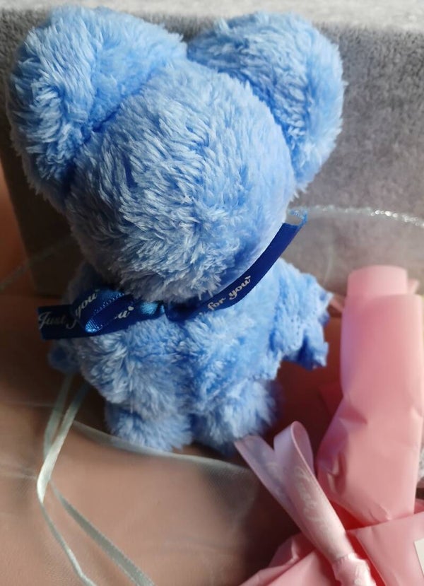 Charmante geschenkset bestaande uit een coral fleece handdoek in de vorm van een beer, gecombineerd met decoratieve zeepbloemen. Verpakt in een transparante geschenkdoos, ideaal als cadeau voor kerst, huwelijk, of badkamerdecoratie.
