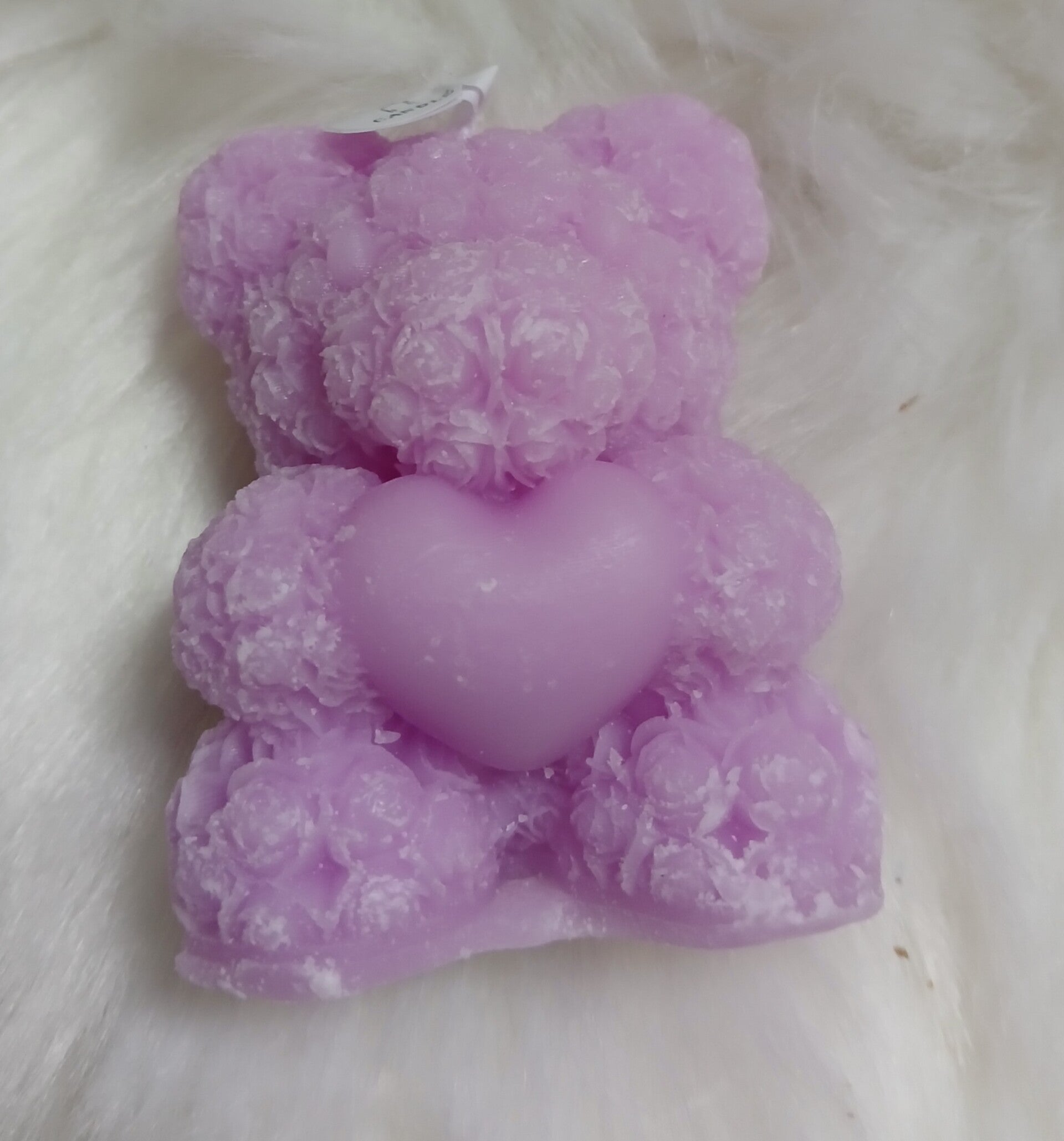 Een geurige knuffel in waxvorm: deze lilakleurige teddybeer houdt een hartje vast en straalt pure zachtheid uit. Met zijn bloemige textuur en subtiele glans is hij een ode aan liefde en troost. Perfect als geschenk voor iemand die je koestert — of gewoon voor jezelf, als dagelijkse reminder van warmte.