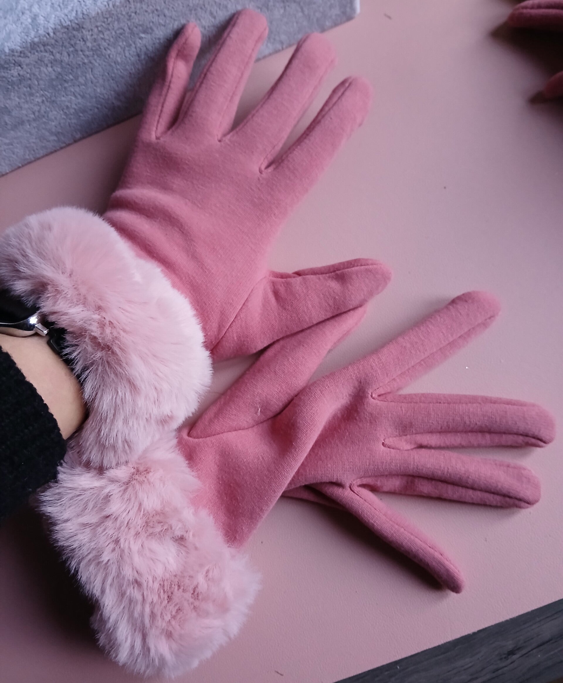 Roze Winterhandschoenen met Fluffy Boord – Soft Pink Elegance