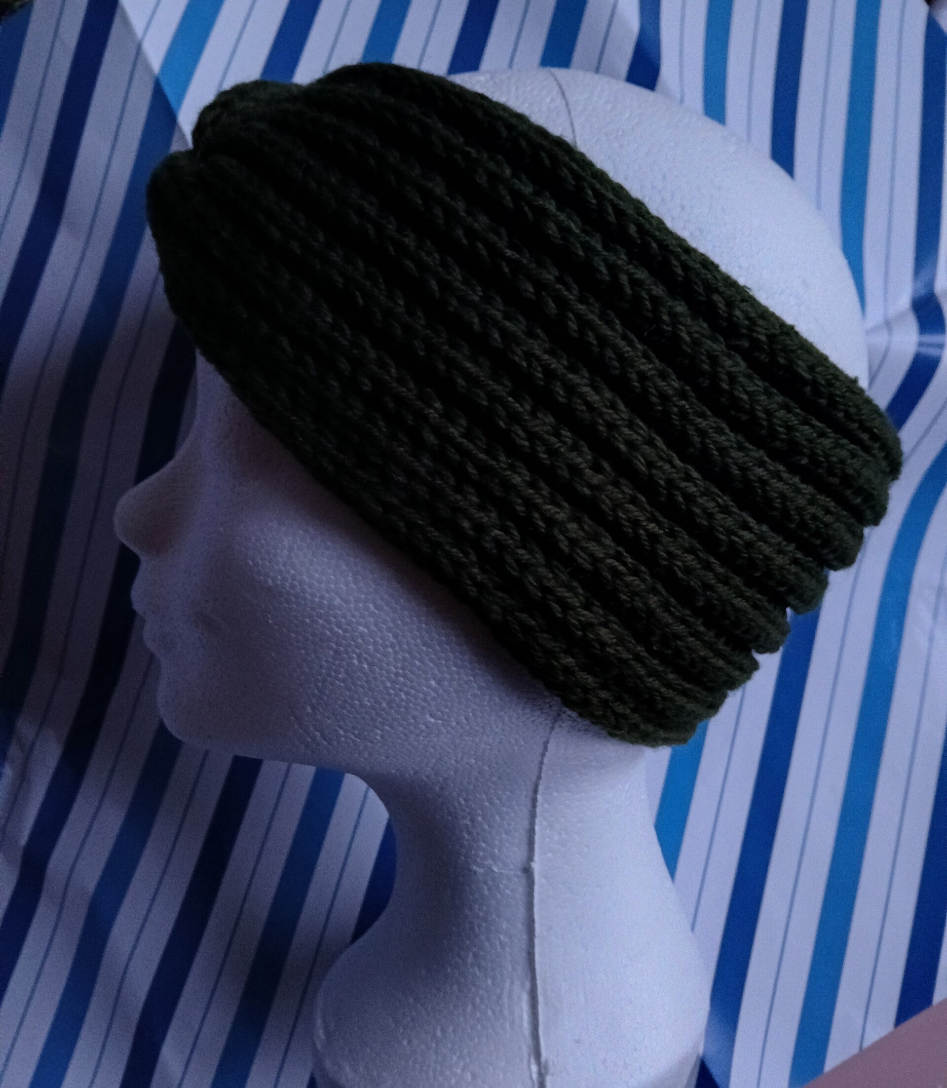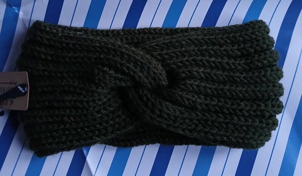 Donkergroene Gebreide Hoofdband met Twist – Forest Calm