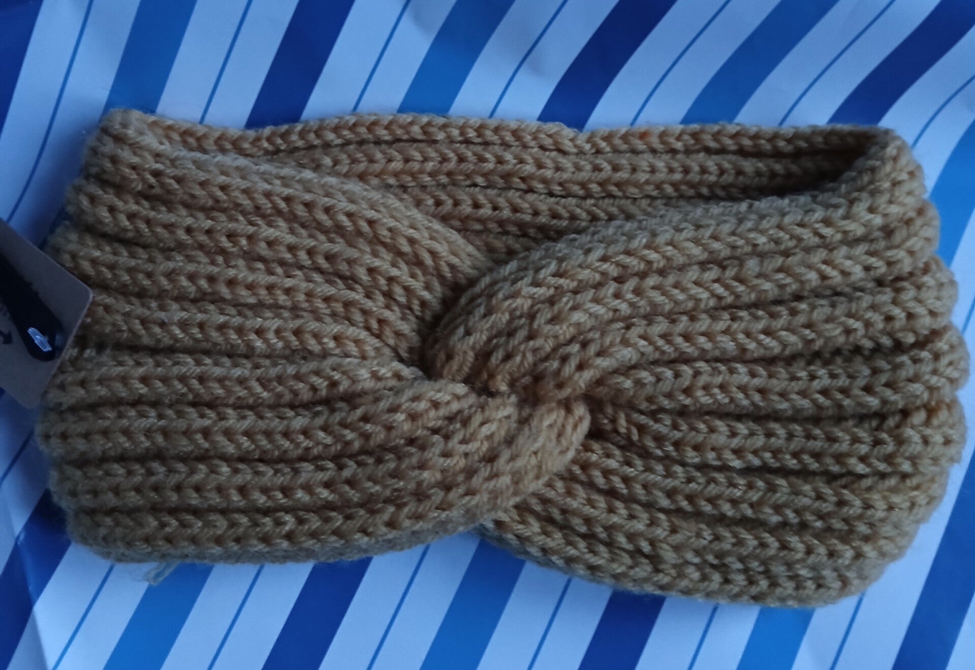 Lichtbruine Gebreide Hoofdband met Twist – Soft Earth
